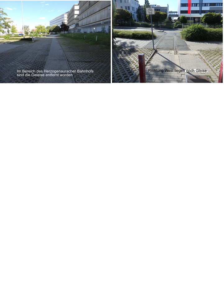 - Die Trasse mit den Gleisen von Erlangen-Bruck bis Herzogenaurach ist vorhanden.